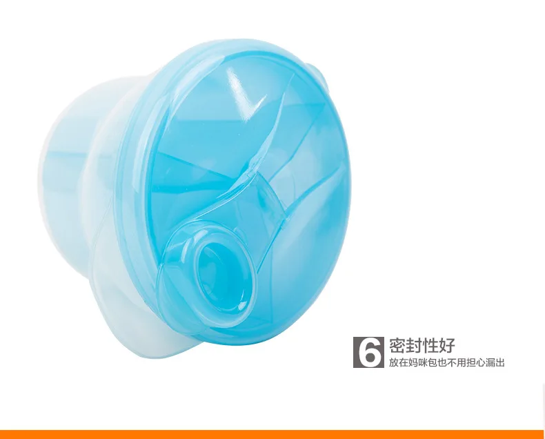 Информация о продукте • Название: портативная вращающаяся в трех решетках коробка для сухого молока • Цвет: синий/розовый • Упаковка: полиэтиленовый пакет, одна посылка • Размер: 9,5*8,5 см Особенности • 1. Хорошая герметизация и не промокание; • Герметичный колпачок гигиеничен, а сухое молоко не подвержено воздействию влаги. Особенно удобно для мам носить с собой ночью и во время выхода. Добавить полку на каждом полу, чтобы предотвратить утечку сухого молока или изолировать остаточный порошок молока грязный мешок 2. Красивый внешний вид и простота в использовании • Вы можете класть необходимое количество сухого молока три раза одновременно, и вы можете класть в количество сухого молока, которое ваш ребенок должен пить несколько раз. Внутри коробки для сухого молока есть отделение. При заваривании сухого молока сухое молоко не выльется из бутылки. • 3. Каждая маленькая сетка имеет отдельную крышку, которую можно использовать отдельно • Прозрачная пластиковая коробка для сухого молока, три отделения, количество сухого молока в одном отсеке-это количество молока для ребенка, чтобы пить, легко осуществить.