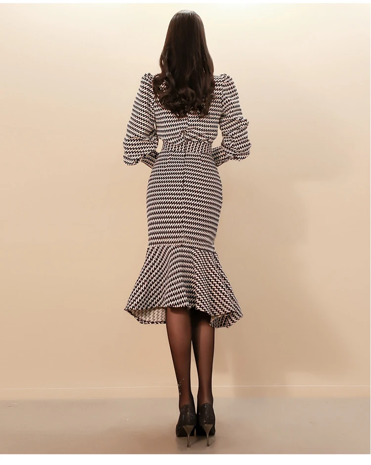 Отзывы о Женский винтажный комплект с рыбьим подолом осень 2019 клетчатый тонкий