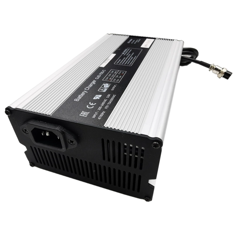 Примечание! Если вам нужно установить штепсельную вилку 3P GX16, пожалуйста, оставьте сообщение или свяжитесь со службой поддержки клиентов, в противном случае будет не устанавливать штепсельную вилку Входные параметры: AC100-120V/60 Гц, AC200-240V/50 Гц (выберите напряжение, соответствующее вашей стране.) Спецификация продукта: -Входные параметры: AC100-120V/60 Гц, AC200-240V/50 Гц (два варианта) (пожалуйста, оставьте нам сообщение) -Параметры выхода: 58,8 в 10 А -Режим зарядки: переключатель постоянного напряжения постоянного тока -Инструкции по зарядке: зарядный красный светильник, зеленый светильник, мигающий светильник -Входной интерфейс зарядного устройства: разъем word -Выходной интерфейс зарядного устройства: может быть настроен в соответствии с требованиями, пожалуйста, свяжитесь с нами -Разъем зарядного устройства: EU / US / AU / UK (четыре дополнительных) -Функции защиты: перегрузки по току/перенапряжения/перегрузки/перегрева/короткого замыкания/обратного подключения и других функций защиты -Материал: металлический алюминиевый чехол -Размер изделия: 215*106*60 мм -Мощность: 672 Вт -Цвет: серебристый Описание: -Зарядное устройство имеет корпус из высококачественного алюминиевого сплава, обладает хорошей теплоотдачей, поверхность распыляется кислородом, элегантный внешний вид. -Подходит для зарядки литиевых аккумуляторов с использованием технологии интеллектуального управления MCU. -Охлаждающий вентилятор с контролем температуры, с постоянным током/постоянным напряжением/током/перенапряжением/перегрузкой/перегревом/короткого замыкания/обратным подключением и другими функциями защиты. Посылка включает в себя: 1 шт. 58,8 в 10 а зарядное устройство 1 шт. кабель питания переменного тока