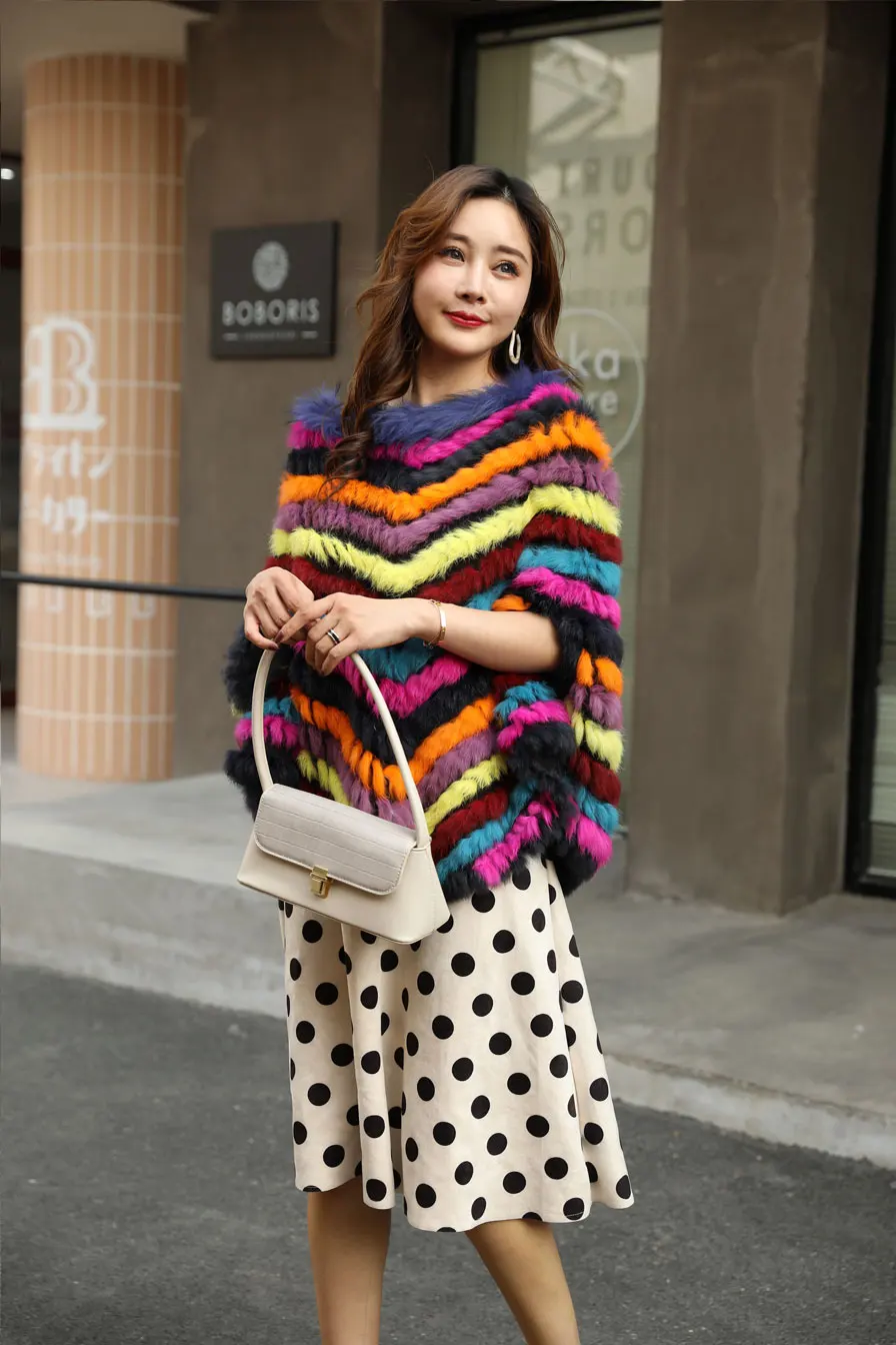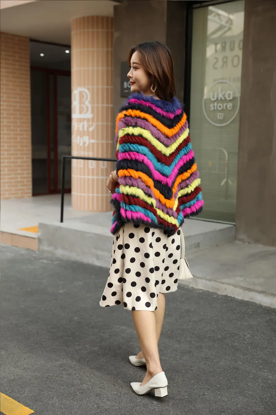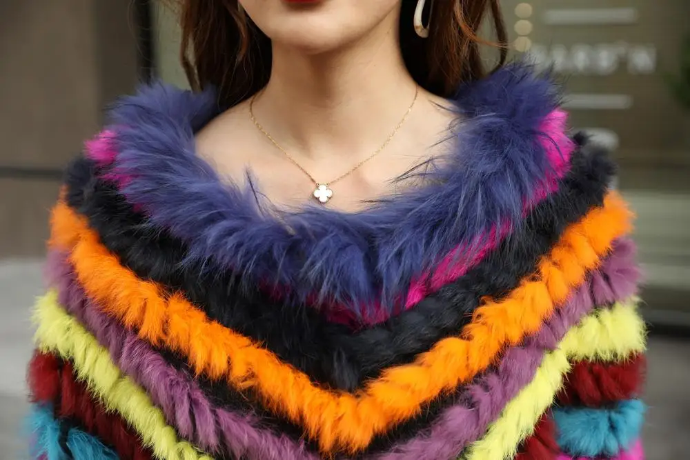 Отзывы о Женская Вязаная Шаль из натурального кроличьего меха с воротником енота модный