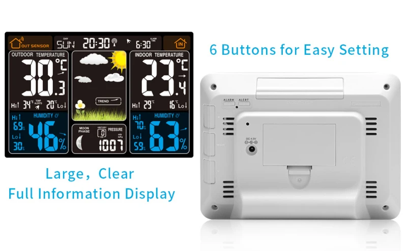 Функция: измерение влажности, отображение недели, будильник, вечный календарь, украшение, отображение месяца, прогноз погоды, фазы Луны, термометр, календарь, отображение фазы Луны, индикация 24 часа