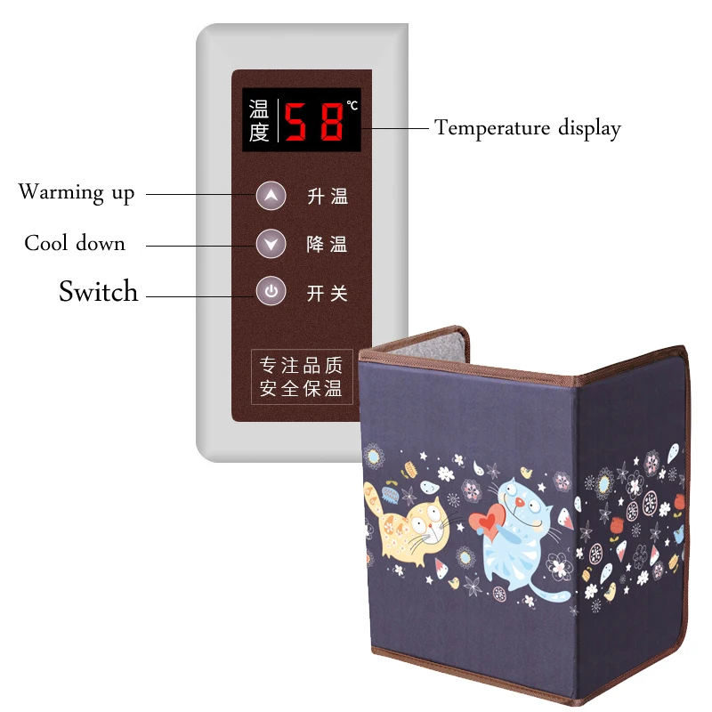 * Make sure the heating pad switch and junction box are away from the water source to avoid short circuit.