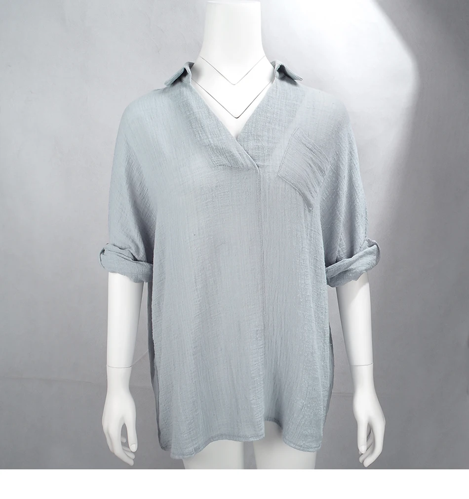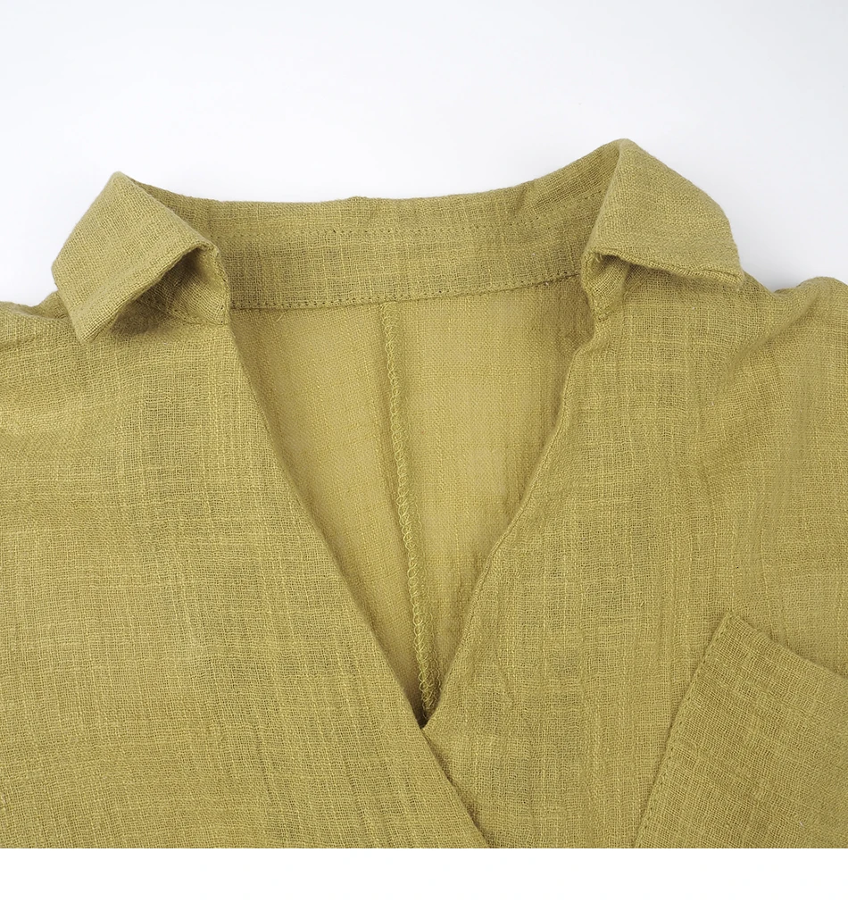 Отзывы о Повседневная Осенняя рубашка из хлопка и льна с отложным воротником длинным