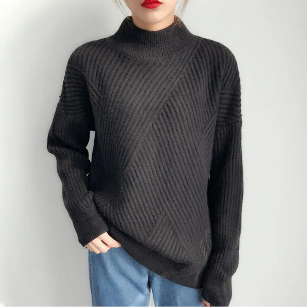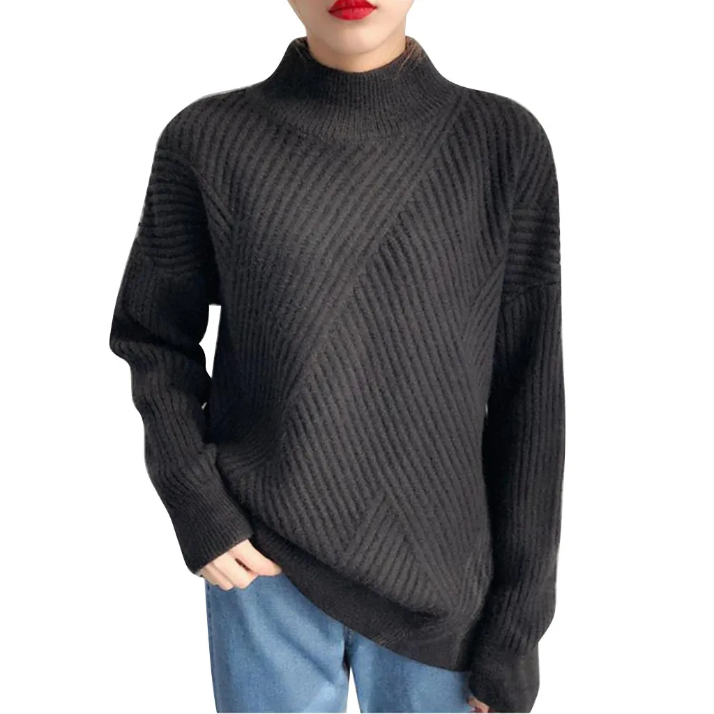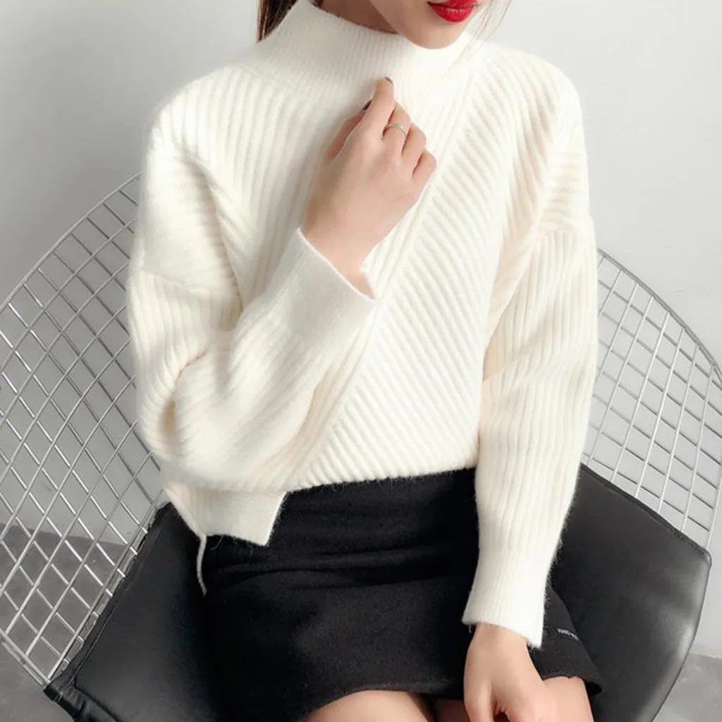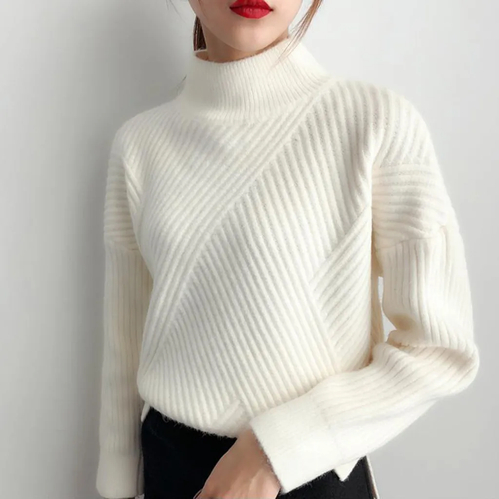 Осенне-зимний Повседневный свитер для женщин, однотонный пуловер с высоким воротником, вязаные базовые Топы