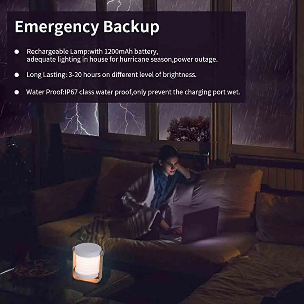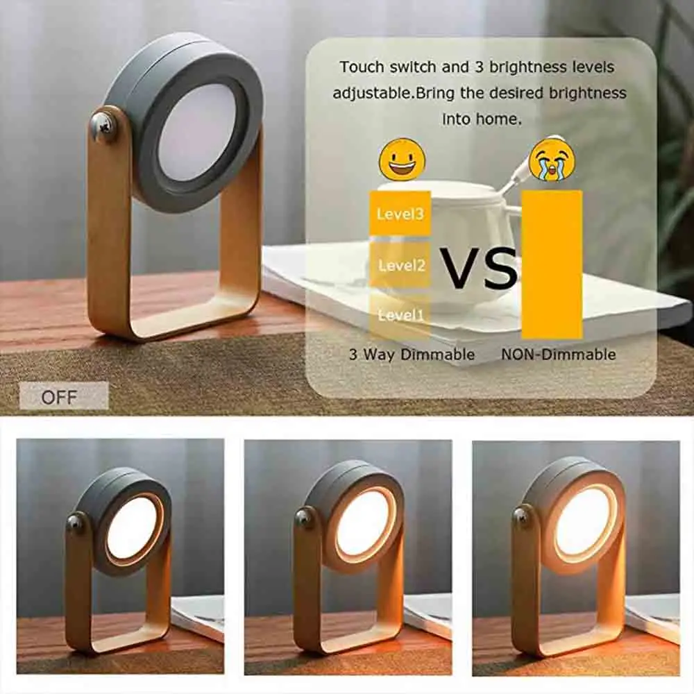 Название продукта: светодиодный ночник Емкость аккумулятора: 1200 мАч Время зарядки: 3-6 часов Цвет излучения: теплый белый Материал: дерево + абс + ПК + металл Вход питания: USB DC 5 V Режим переключения: Touch No/OFF Размер упаковки: 200*145*57 мм Вес нетто: 224 г Особенности: 1. Этот портативный фонарь с регулируемой яркостью, имеет 3 уровня яркости; 2. Эта лампа заряжается от USB; 3. Эта лампа вращается на 360 градусов Может использоваться в качестве ночной лампы для детской комнаты в спальне или аварийного освещения в ночное время; Хорошо подходит для детей и детей в ночное время; Может использоваться в качестве книжного светильника, настольной лампы для изучения и чтения; Может использоваться в качестве декоративной лампы для атмосферного освещения; Может использоваться в качестве вспышки; может висеть в любом месте; Его гибкий стиль может удовлетворить различные освещения в различных условиях;