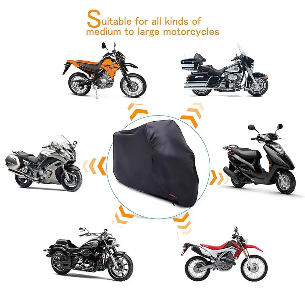 Motorcycle Covers, Heavy Duty 210D Waterproof UV Protective Tear Proof Motorbike Cover with Safety Cloth Lock Holes Design, All Weather Outdoor ProtectionBullet Points: