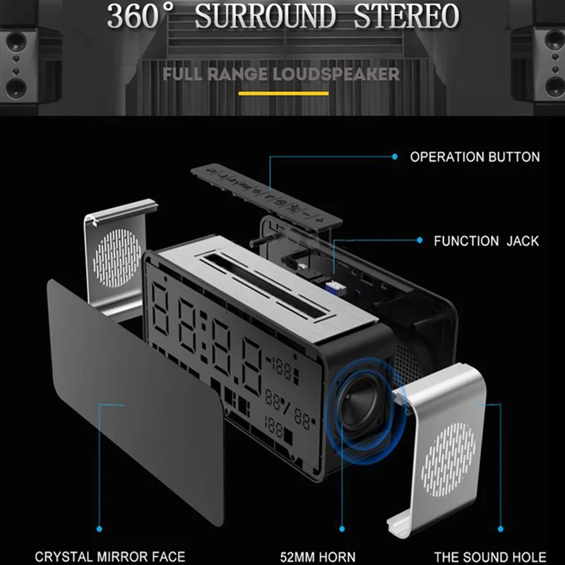 Отзывы о Беспроводной Bluetooth-динамик с будильником 12 Вт портативный стерео сабвуфер Hi-Fi