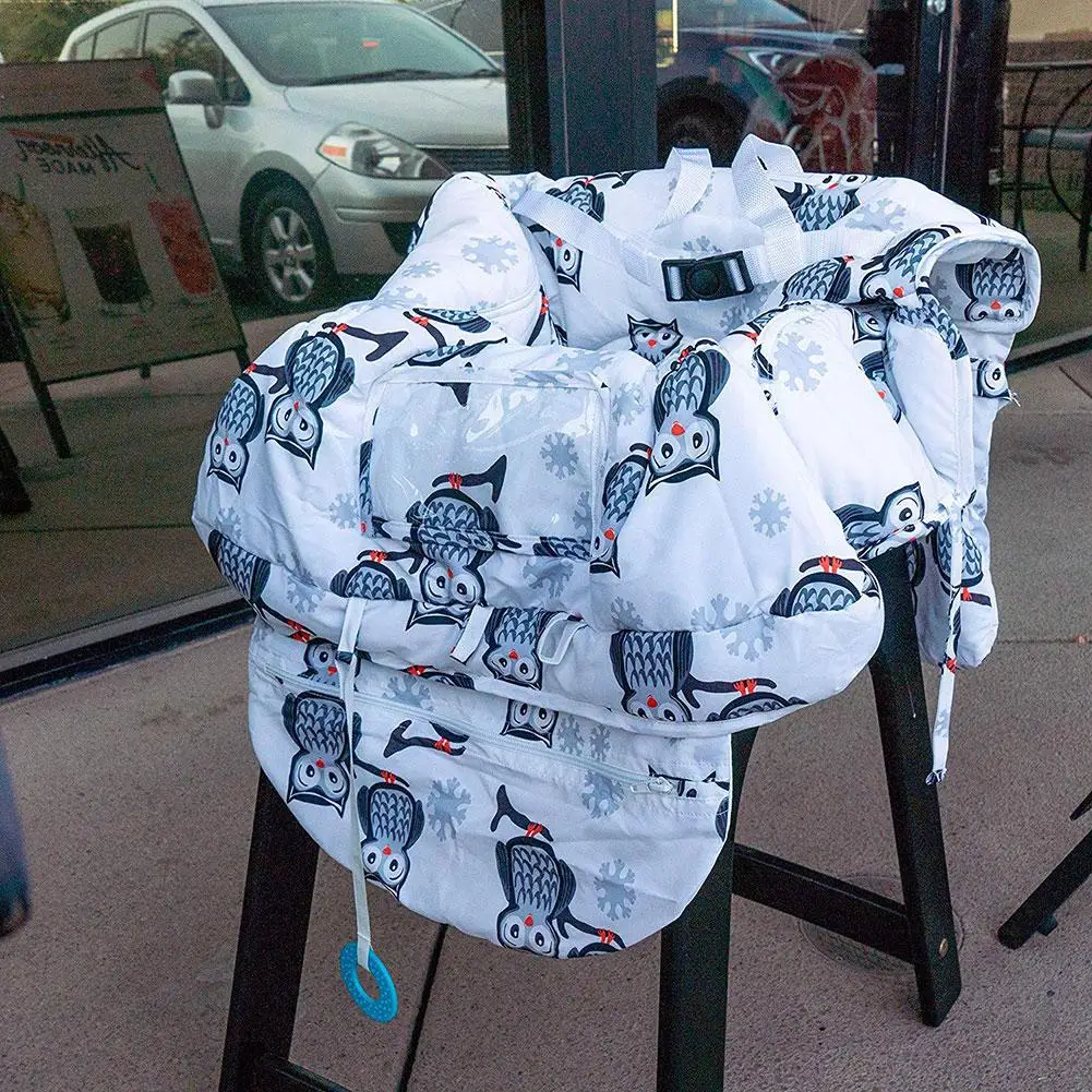 2. Простой дизайн: быстро установите этот чехол на корзину или высокий стул с прокруткой вверх и вниз. Повесьте милые игрушки на 3 игрушечные кольца, чтобы сохранить участие вашего ребенка и положить ценные предметы в сумку на молнии. Наслаждайтесь шопингом с ребенком.