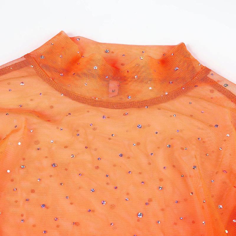 Отзывы о Goocheer Женский сетчатый Прозрачный Топ с длинным рукавом блестящий кроп-топ