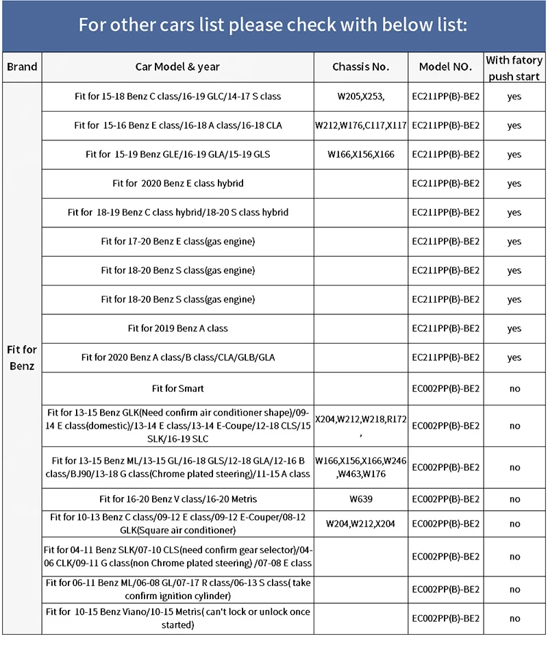 PLAY PKE kit EC211PP(B)-BE2-1518C с пультом дистанционного запуска двигателя, подходит для следующих автомобилей BENZ