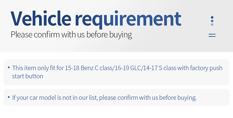 Для 2019 GLC, пожалуйста, сделайте фотографию Автомобиля заводской кнопки Пуск к нам для подтверждения перед покупкой.