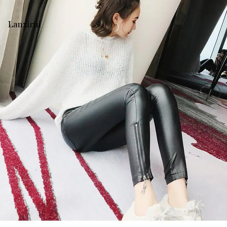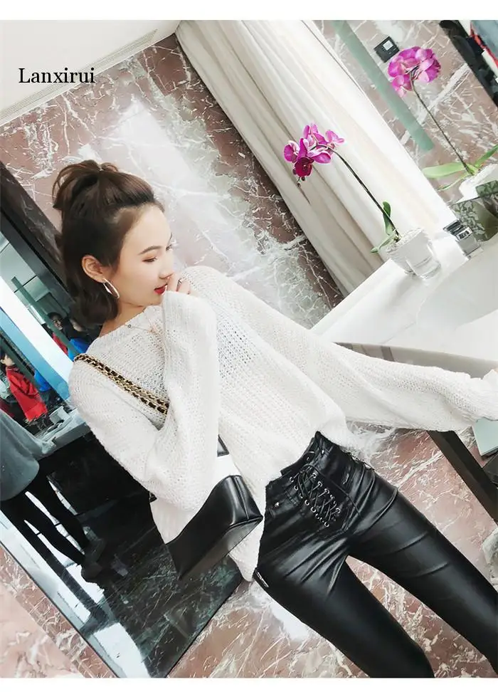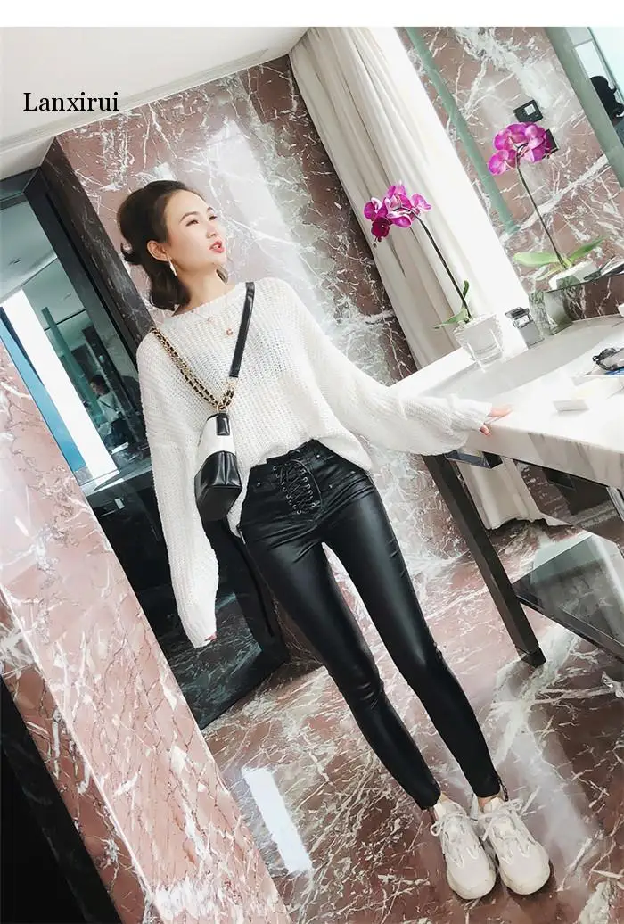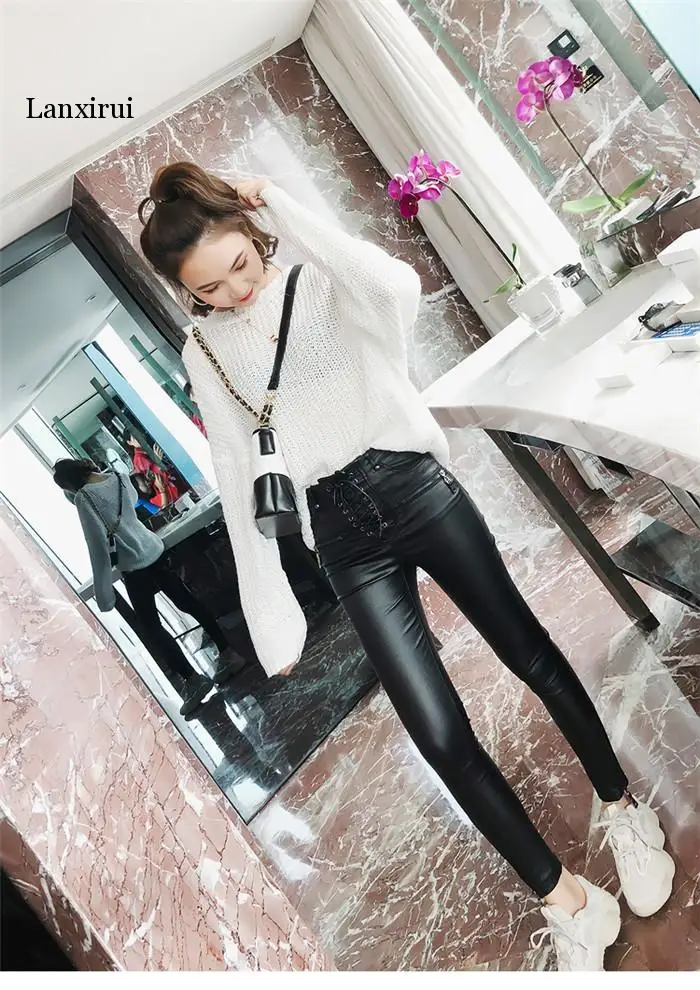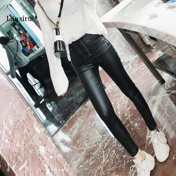 Отзывы о Брюки-карандаш женские из ПУ кожи на завязках с завышенной талией - купить по