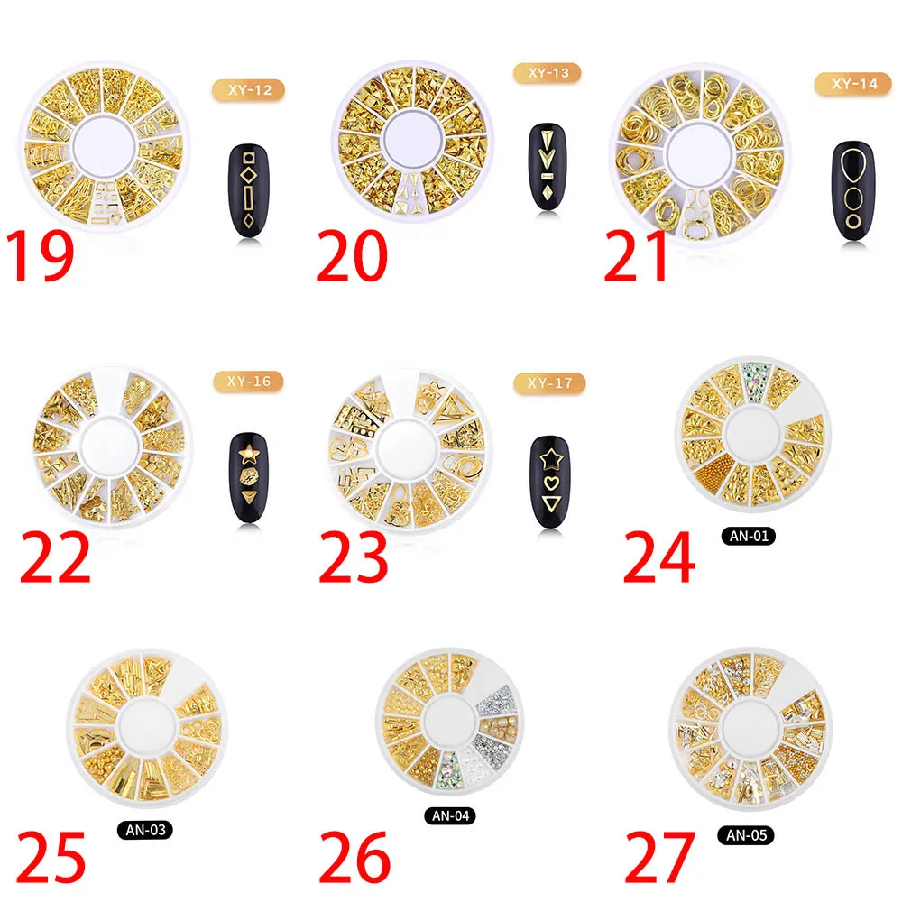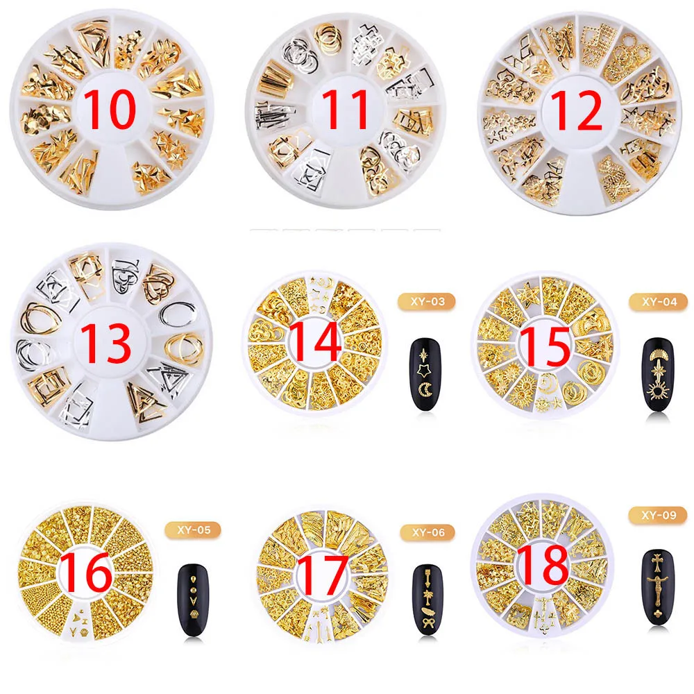 Отзывы о Золотые металлические 3D заклепки 12 ячеек/круг гвоздики для ногтей стразы блестки
