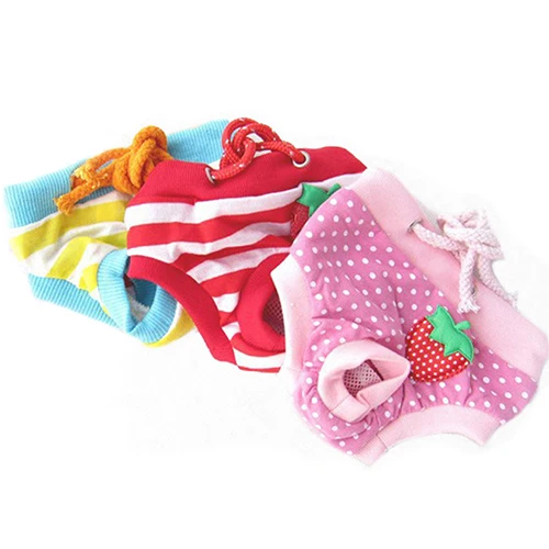 Милый полосатый женский подгузник для щенка с клубничкой, трусики для щенка, физиологические санитарные короткие трусики, нижнее белье для подгузников.