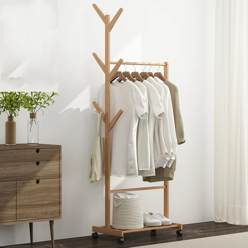 Простая вешалка для одежды, напольная полка из массива дерева, вешалки для спальни, стеллаж для хранения домашней гостиной, простая современная вешалка для хранения одежды65,82 долларов США /
