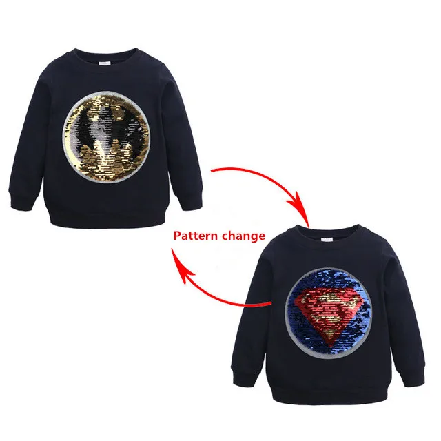 Толстовки с длинными рукавами для мальчиков и девочек с обратимыми блестками, Детский свитшот, 2019
