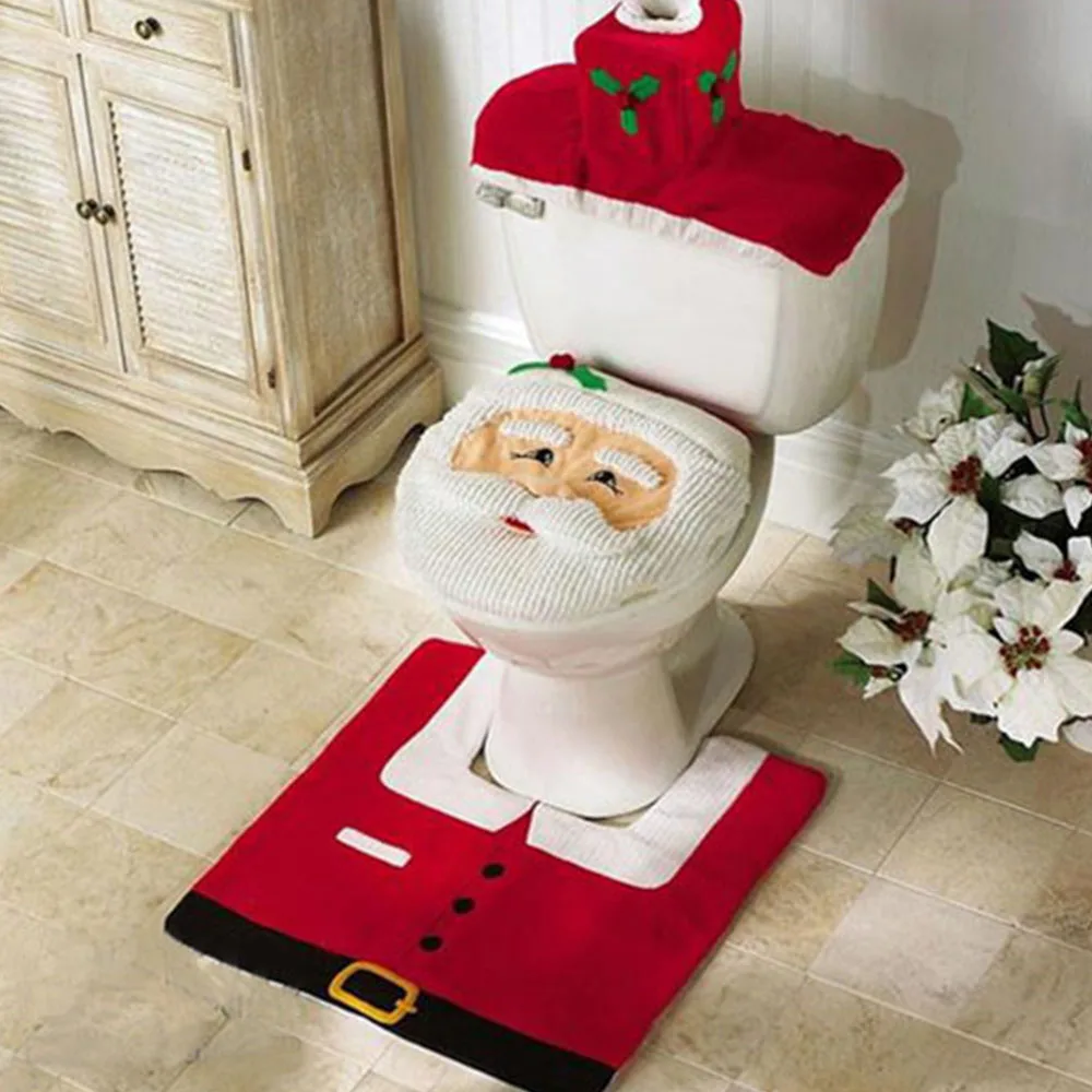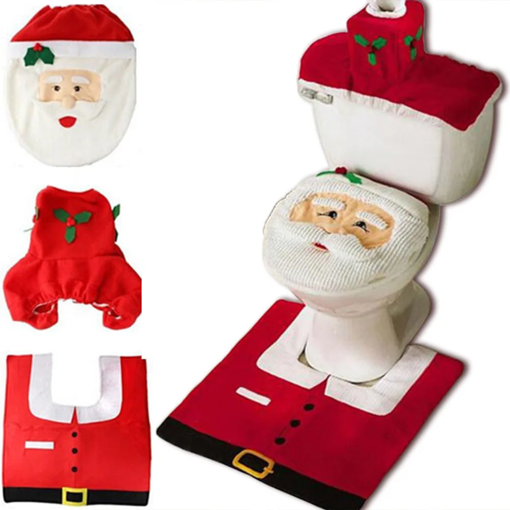 Рождественское сиденье для унитаза с Санта-Клаусом, набор покрытий для унитаза, рождественские украшения для ванной комнаты3 предмета в комплекте