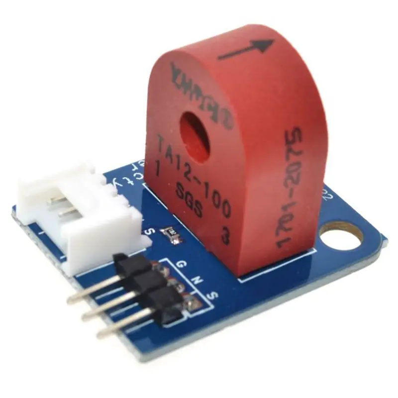 Электронный Кирпич датчика электричества основан на TA12-100 трансформаторе тока, который может преобразовывать сигналы переменного тока большого тока в сигналы Малой Амплитуды. Максимальный ток, который может быть обнаружен, может достигать 5А, а текущий сигнал может считываться через аналоговый порт ввода/вывода.