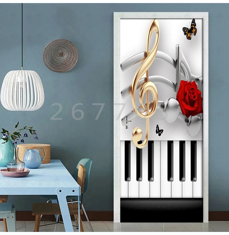 Отзывы о Самоклеящиеся дверные наклейки сделай сам 3D на фортепиано ноты розы для гостиной
