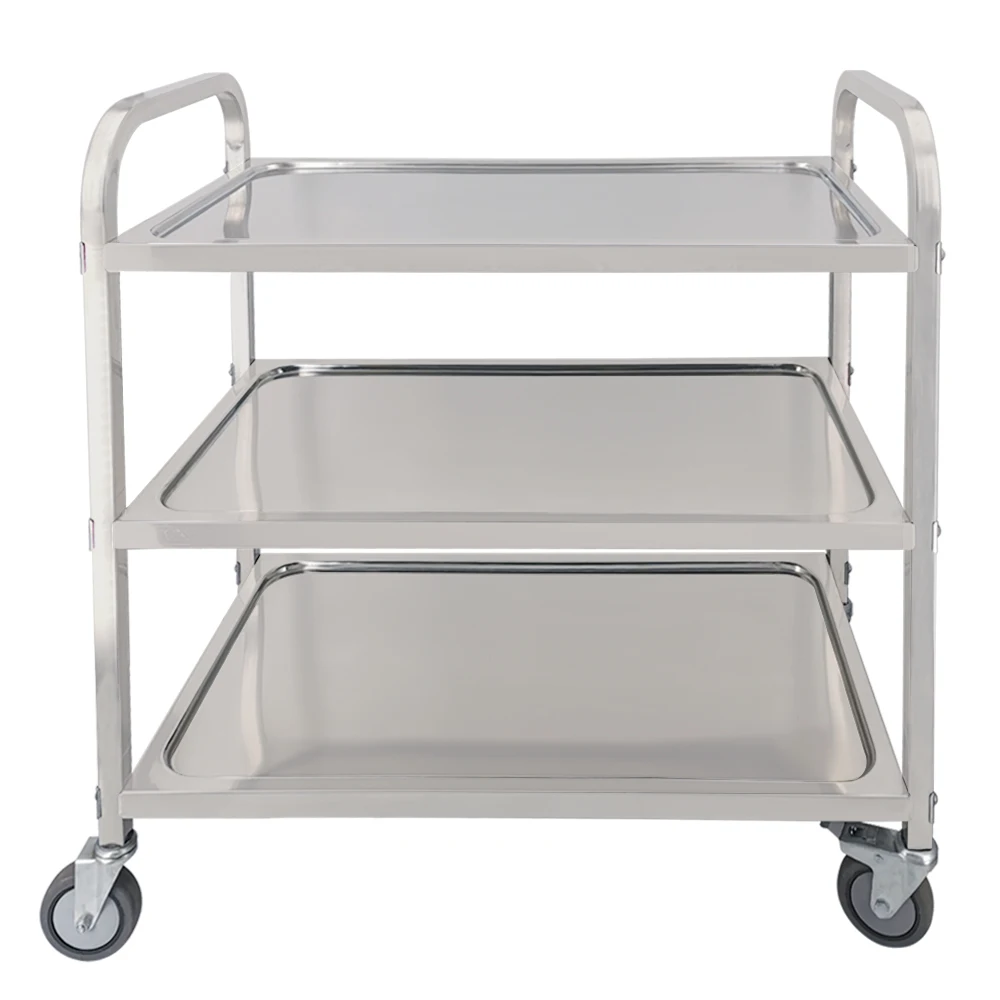 Большая 3 ярусная Тележка из нержавеющей стали, 4 колеса, коммерческая тележка, Сервировочная ресторанная тележка с тормозным подшипником, распродажа