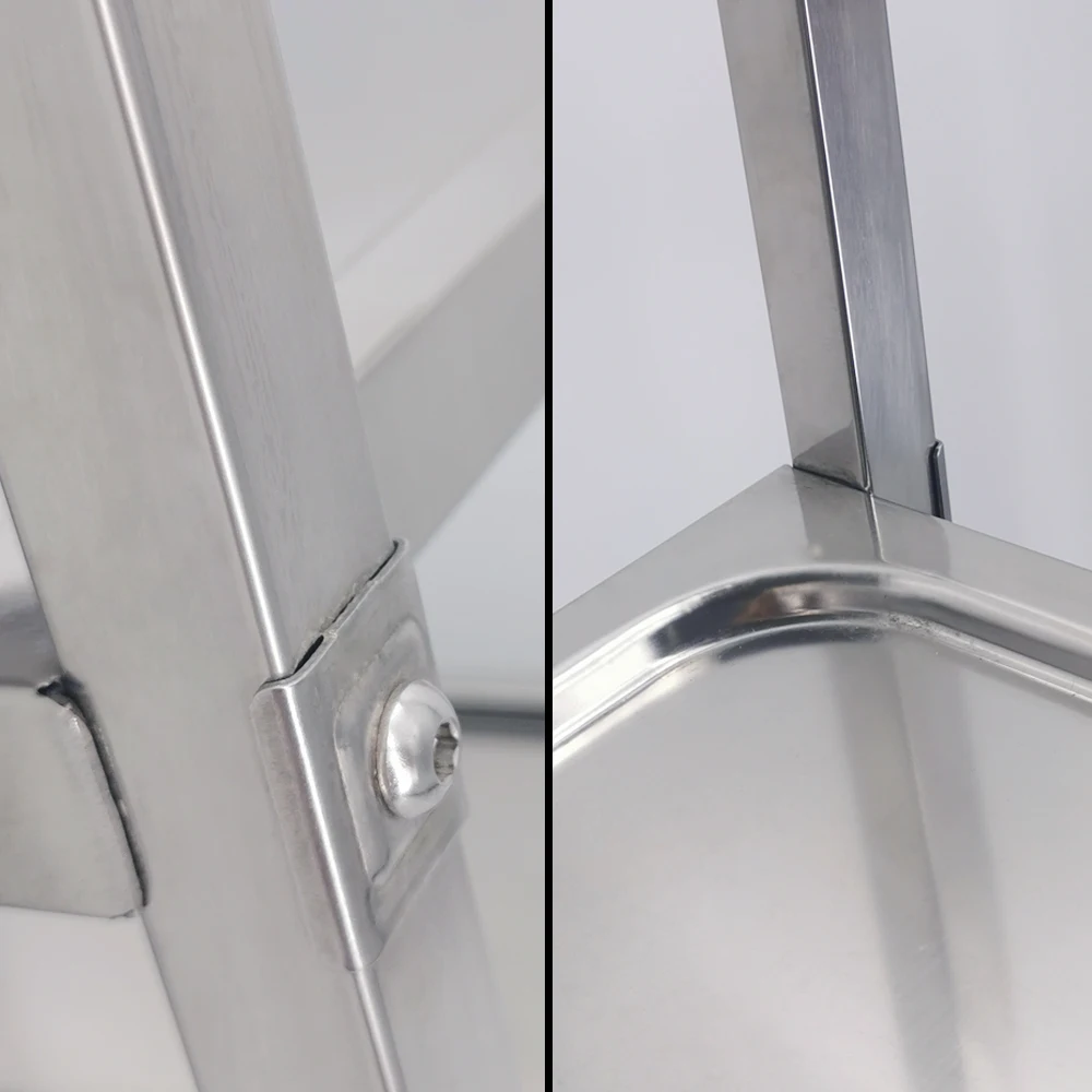 Эта Сервировочная Тележка из нержавеющей стали идеально подходит для домашнего или делового использования. Тележка из нержавеющей стали с 3 полками и прочной трубчатой рамой, антиударная конструкция для снижения шума из-за ударов. Тележка с колесиками имеет очень стабильную конструкцию и предназначена для более высоких нагрузок. Кроме того, противоударная конструкция кухонной тележки уменьшает шум, вызванный вибрациями. Это будет отличным продуктом, так как его можно использовать различными способами в разных местах.