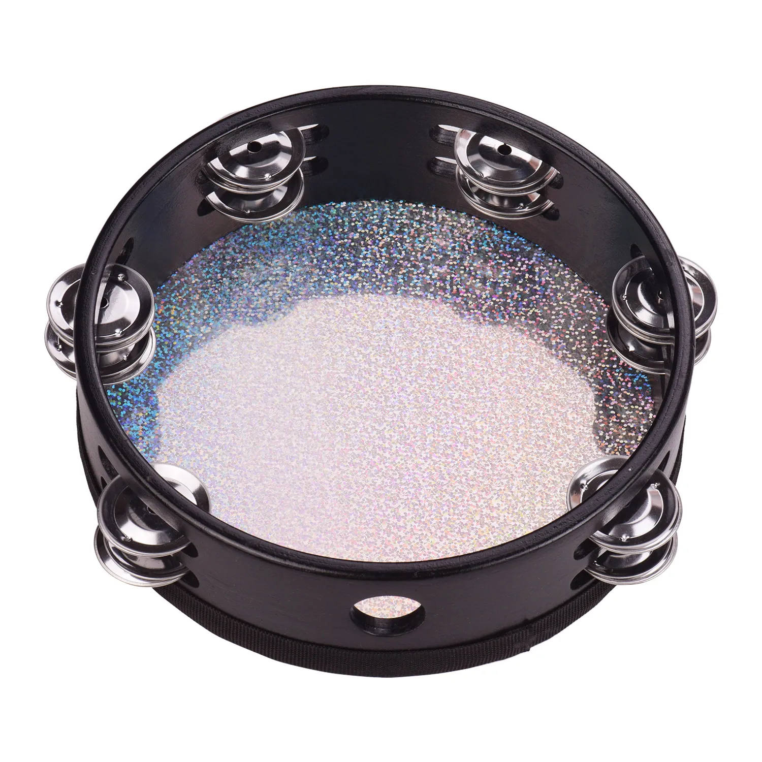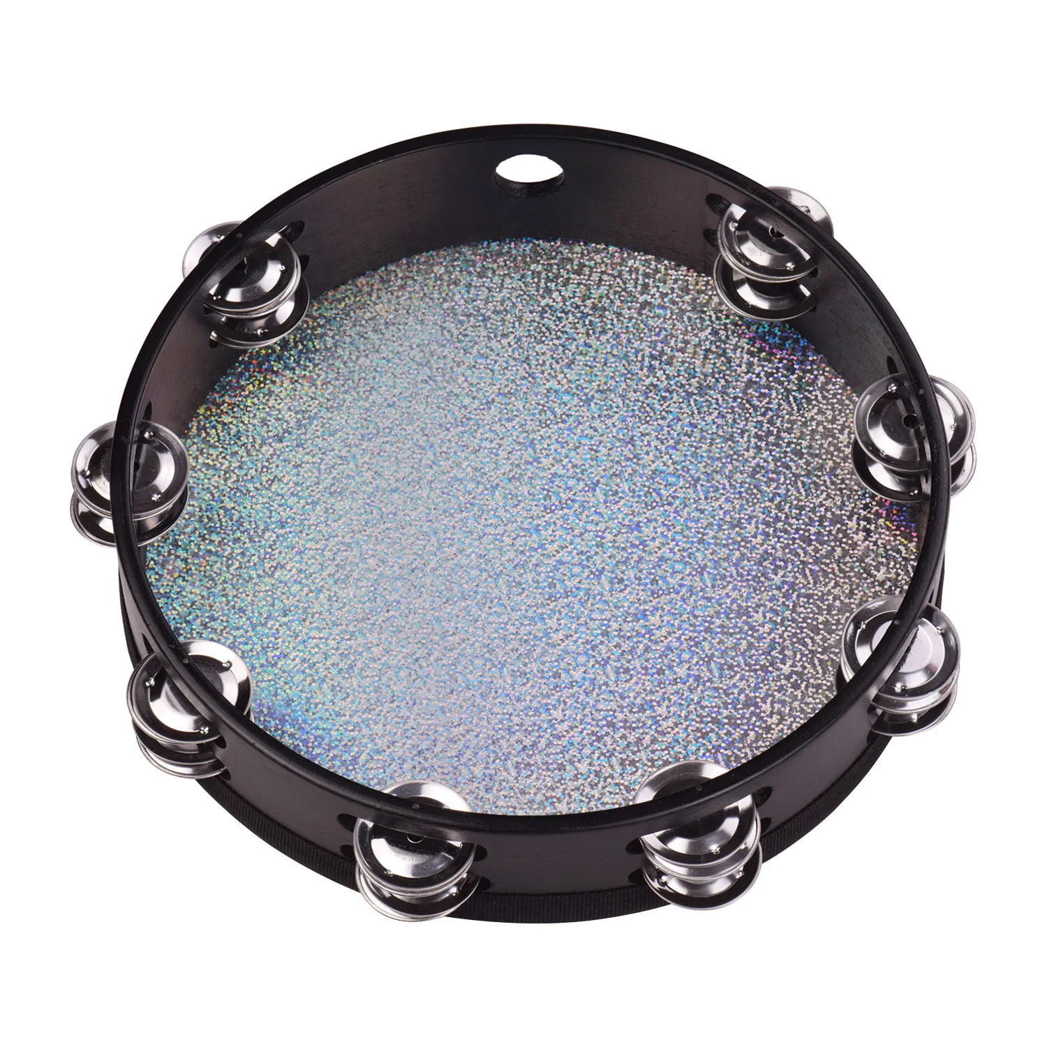 Отзывы о 8/10 дюймов деревянный лучистый бубен ручной барабан с двойным рядом Jingles Сияющий