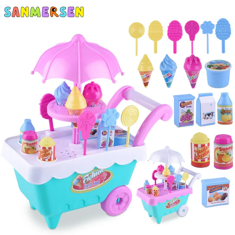 SANMERSEN, 16 шт., мини-тележка для мороженого, конфет, домашних игр, обучающая игрушка, забавная мороженое, овощи, еда, автомобиль, игрушки, кухонные игрушки для детей
