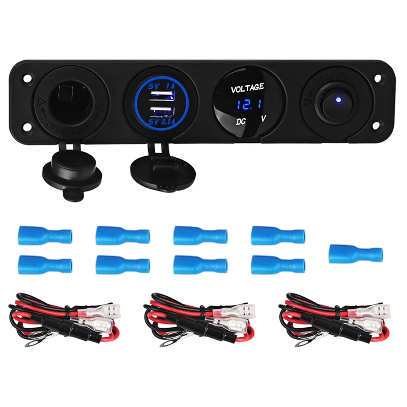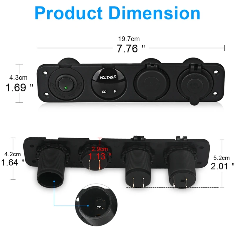 2 шт. 4 в 1 двойной USB Автомобильное зарядное устройство переключатель вольтметра гнездо: 1 шт. 4,08*3,38*2,01 дюймов и 1 шт. 7,76*1,69*2,01 дюймов