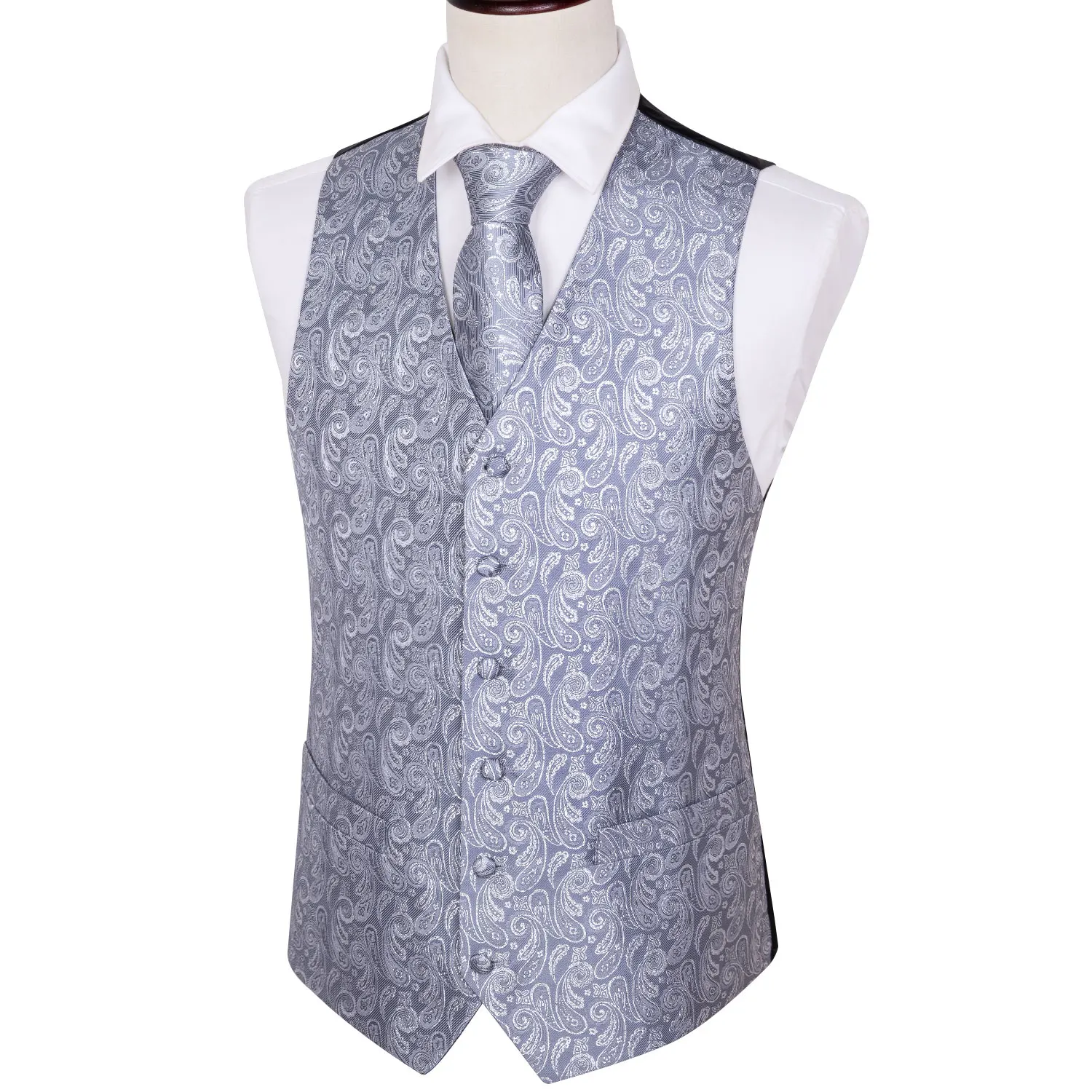 Барри. Ван короткое пальто в формальном стиле для мужчин тонкий костюм жилет Серебряный шелковый жилет Пейсли Галстук Набор платок запонки жилет для свадьбы