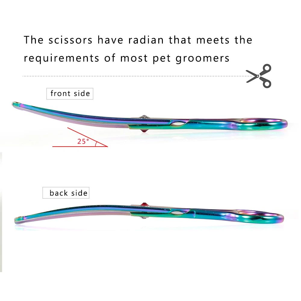 Безопасность и эргономичность: изогнутые ножницы для ухода эргономично разработаны в соответствии с требованиями вашего ухода, для безопасности работы с чувствительными частями (лицо, глаз, нос, лапа, тело).