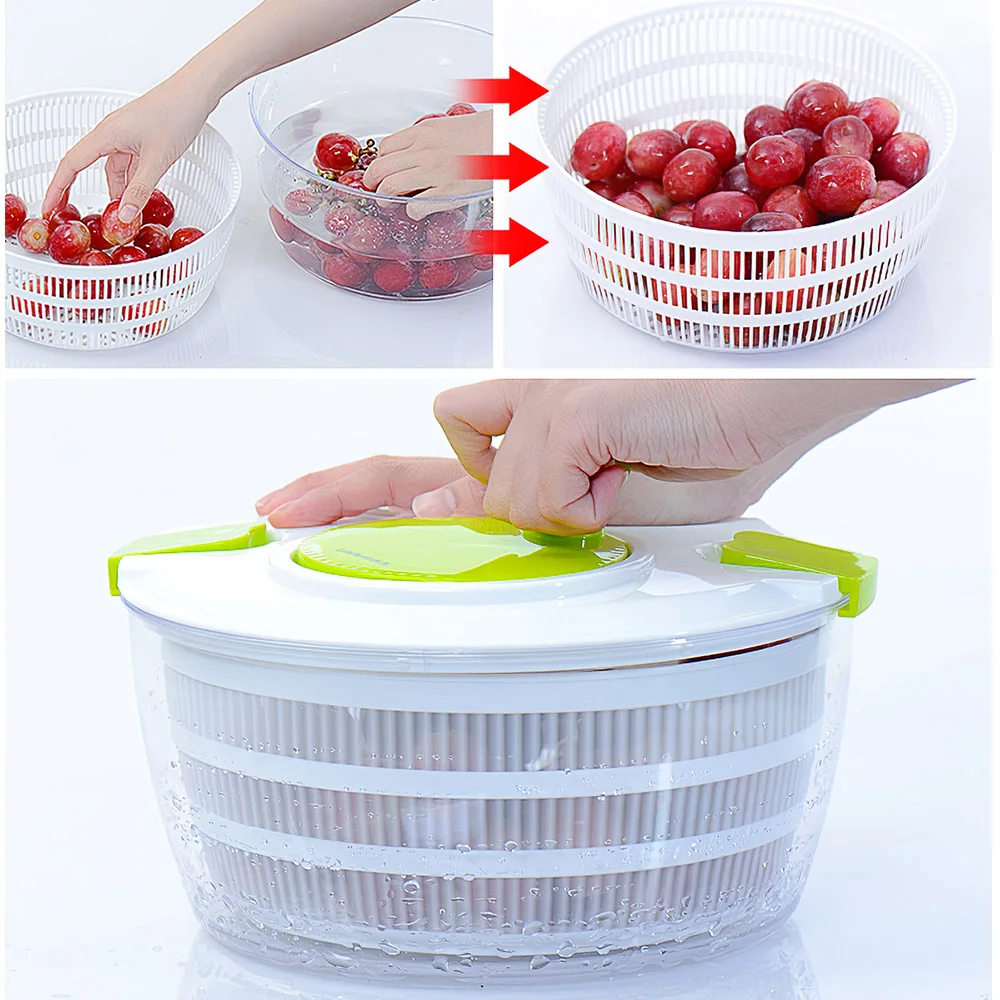 Нравится ли вам делать домашние салаты или просто хотитеПриспособление для полоскания фруктовых и овощных закусок вашей семьи, наш Спиннер для салата-Ваш гаджет. Эта Полезная сушильная машина имеет миску большой емкости, загрузив спиннинговую корзину с помощью здорового приготовления салата, шпината, моркови, томатов вишни и других питательных продуктов, И следи за тем, как он поворачивает их до хрустящего, сухого совершенства в считанные минуты.
