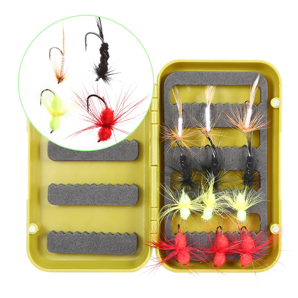 Водонепроницаемая коробка для мух: летучая коробка с пластиковой конструкцией и магнитным замком сохраняет ваши мухи сухими и безопасными в коробке. Эта коробка поставляется с 12 мушками в качестве подарка для рыболовов.