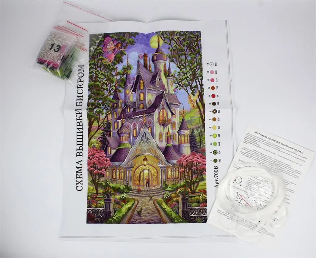 100% Точная печать на холсте. Размер канвы: 35 см * 45 см Размер готового изделия: 24,1 см * 39,5 см. Бусины: 2 мм. Яркий хрусталь. Бусины высокого качества, 13 цветов.