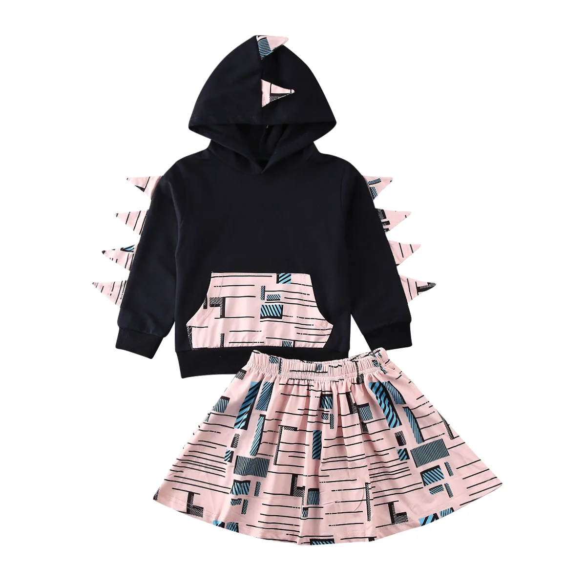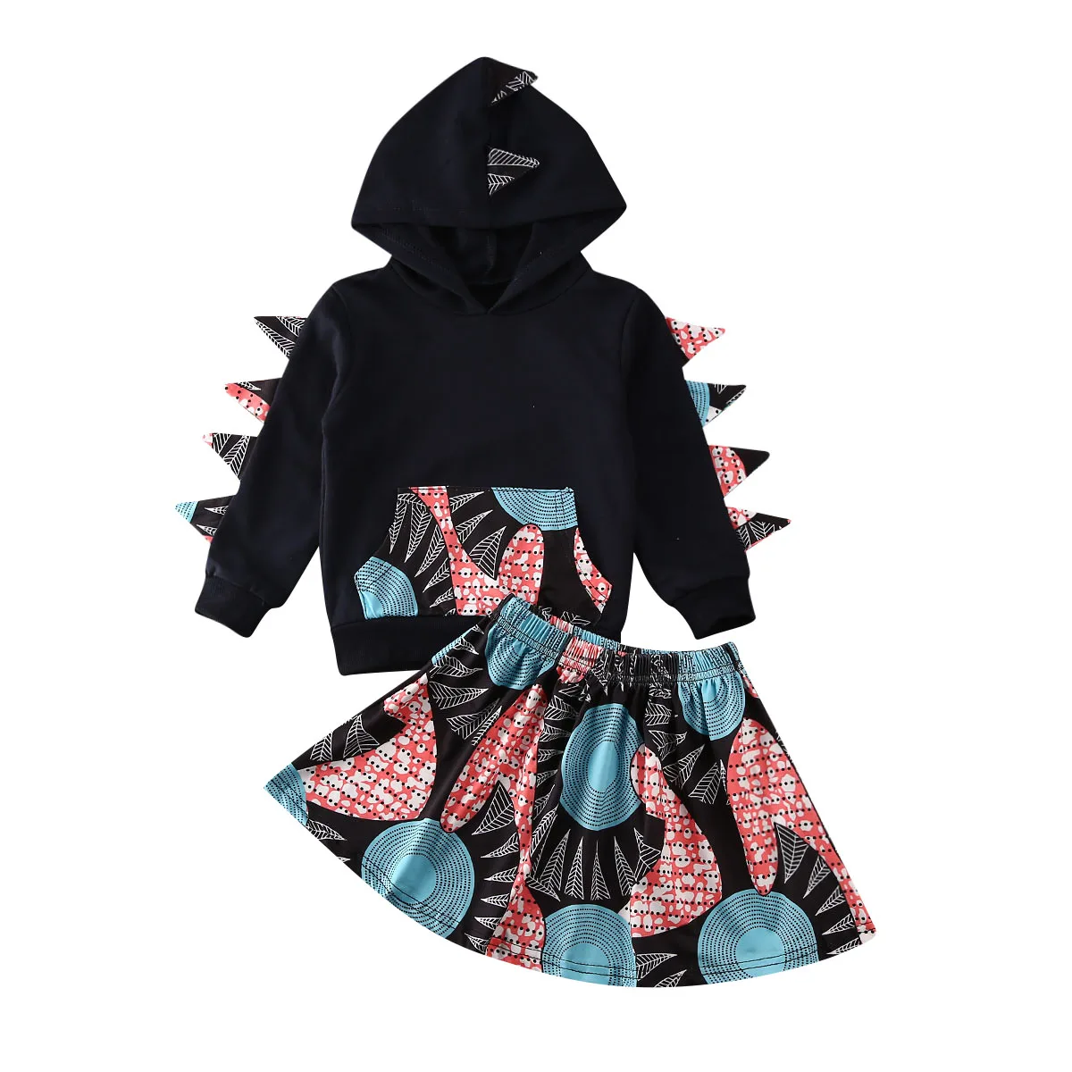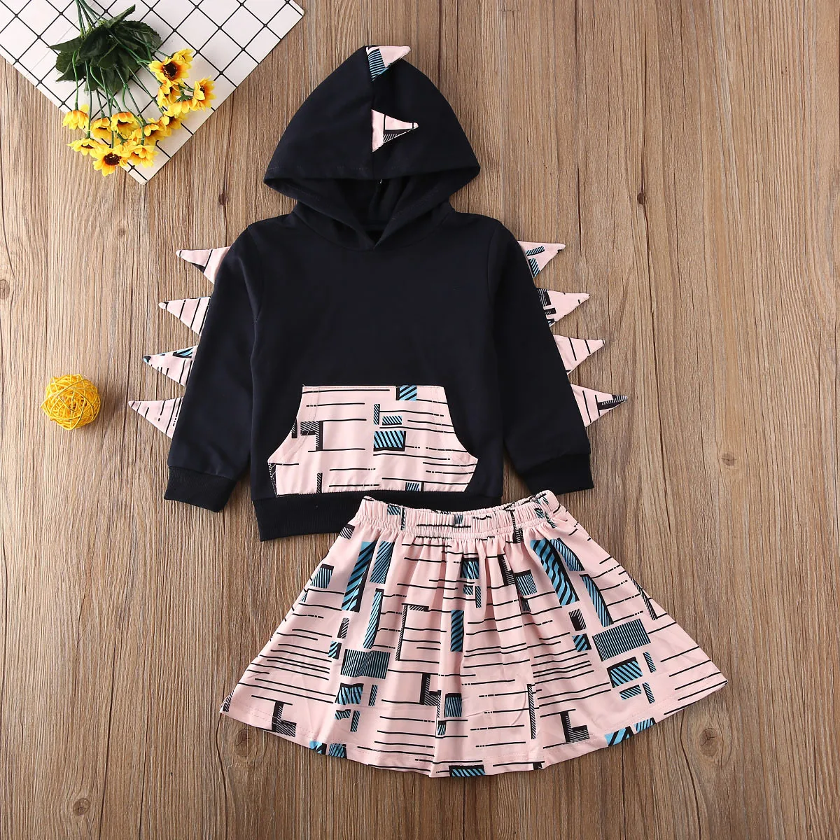 Топы с рисунком динозавра и юбка с цветочным рисунком для маленьких девочек!