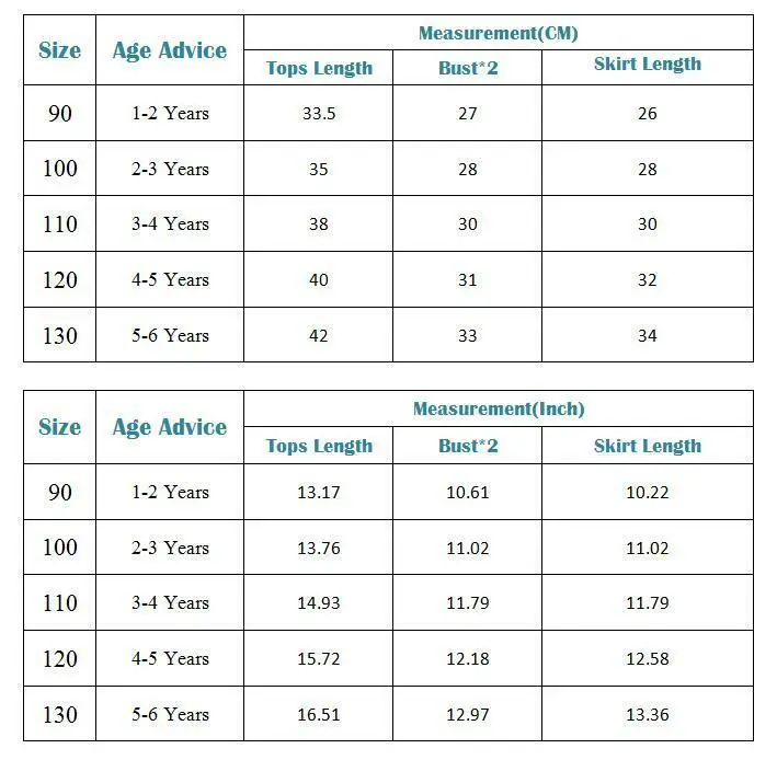Материал:Смешанный хлопок Пожалуйста, обратите внимание: если ваш ребенок пухленький, мы рекомендуем выбрать больший размер, спасибо. Просим перепроверять размеры детей, рост и полноту по размерной таблице перед покупкой/подачей заявки. Спасибо за понимание. Посылка включает в себя: 1x топы Юбка-1 шт. Размеры таблицей: Пожалуйста, обратите внимание: если ваш ребенок пухленький, мы рекомендуем выбрать больший размер, спасибо.