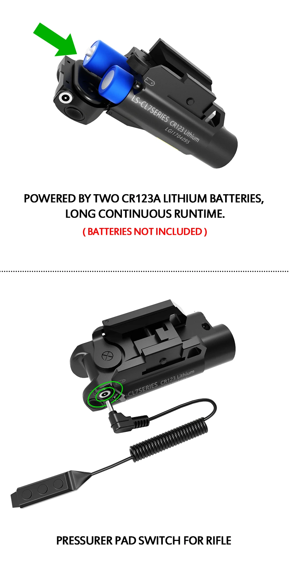 Тип батареи: 3 в CR123A, 2 шт. (Не входит в комплект).