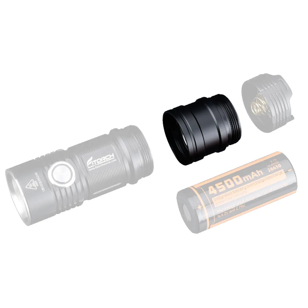 Отзывы о 1Pcs Fitorch ET25 P25 DIY Flashlight Extended Tube From 26350 To 26650 Battery Lamp Lantern Spotlight Torch Accessory | Лампы и
