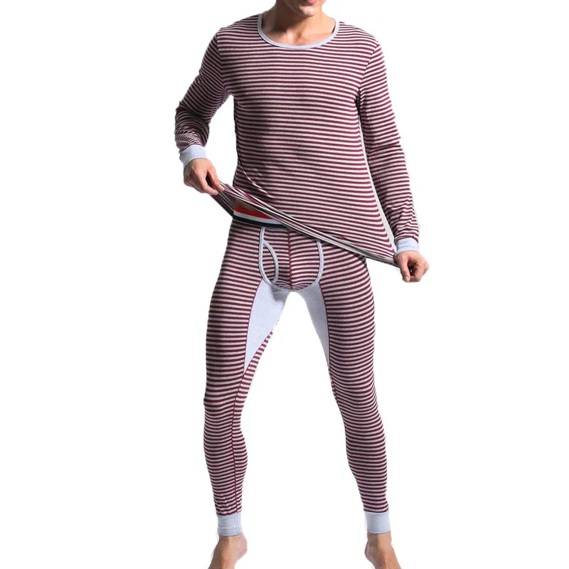 Отзывы о Мужские пижамные комплекты Полосатое хлопковое нижнее белье 2 шт. топы с длинными