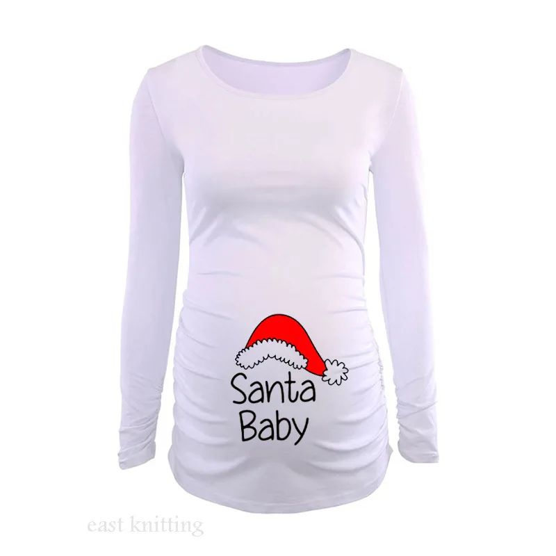 Отзывы о Pregnant Woman Christmas Long Sleeve Santa Baby Print T Shirt Side Ruched Maternity Top Pregnancy Clothes Tee | Мать и ребенок