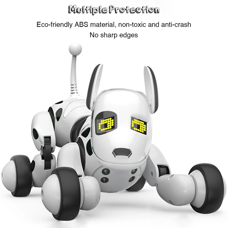 Интеллектуальный радиоуправляемый робот-собака изготовлен из АБС-материала, экологически чистый и нетоксичный, безвредный для детей. Он имеет два режима управления: пульт дистанционного управления и чувствительное к нажатию управление, удобно управлять им. Кроме того, он может спеть и танцовать, говорить истории и так далее, это отличный подарок для ваших детей.Основные характеристики: Функция: пение и танцы, рассказы, действия и программирование. Выполнение действий: приседание, переворачивание, встаньте и пройди, ползите вперед, Подражать мочеиспускание. два режима управления: беспроводной пульт дистанционного управления, чувствительное к нажатию управление. экологически чистый АБС-материал, нетоксичный и анти-авария, без острых краев, безвреден для детей. светодиодный светильник eyes может изменить Выражение