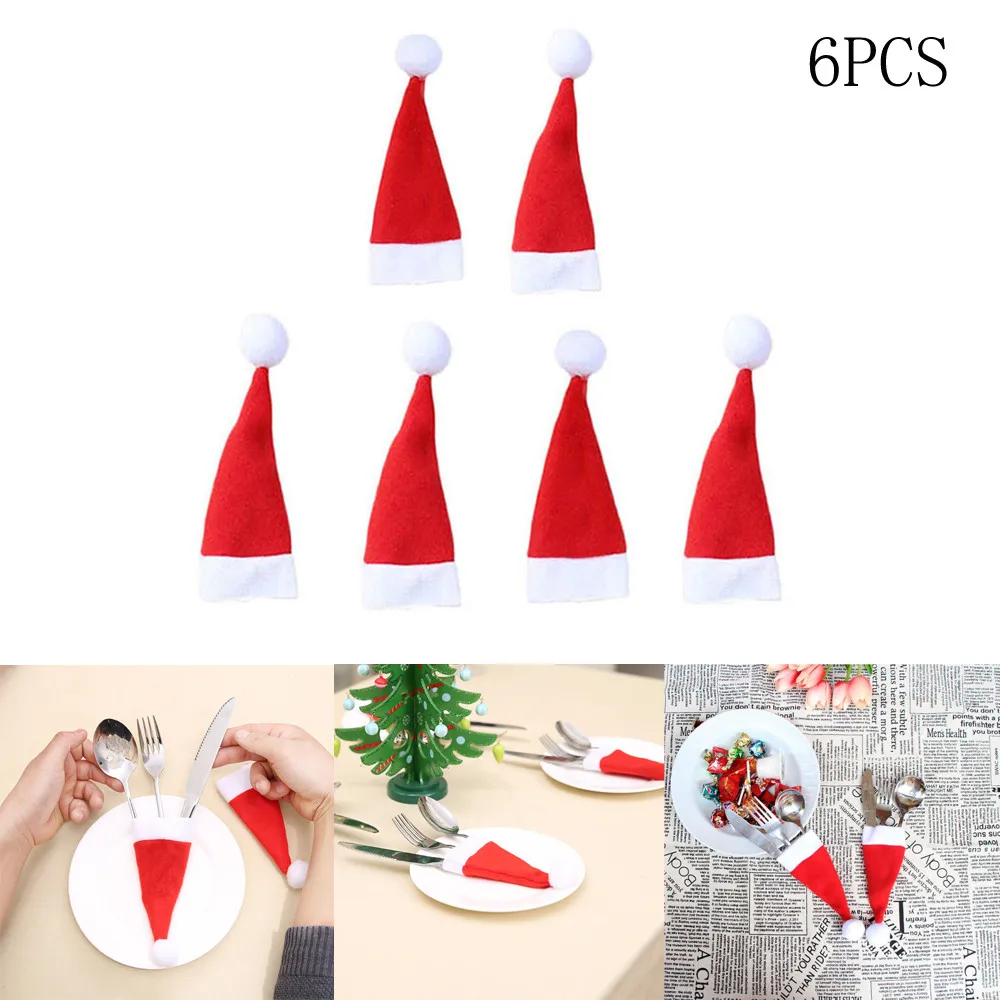 Отзывы о 6pcs Decorative Christmas Hat For Cutlery Holder Table Decorations Dinner Party Home Gift Drop Shipping Tableware Fork set @40 | Дом и сад
