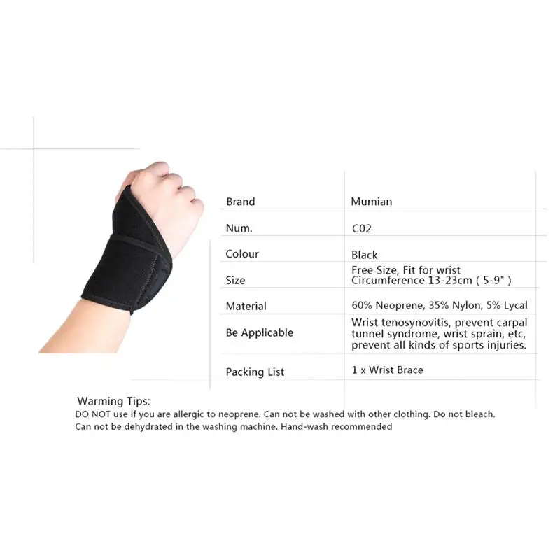 Вы любитель спорта? Вы часто расстроены артралгией? Этот товар станет отличным решением для защиты вашего запястья во время интенсивных упражнений. Материал высшего класса, пропускает воздух и впитывает пот для комфортной носки. Обруч для большого пальца надежно и надежно удерживает его на месте. Кроме того, он хорошо регулируется для вашего запястья.