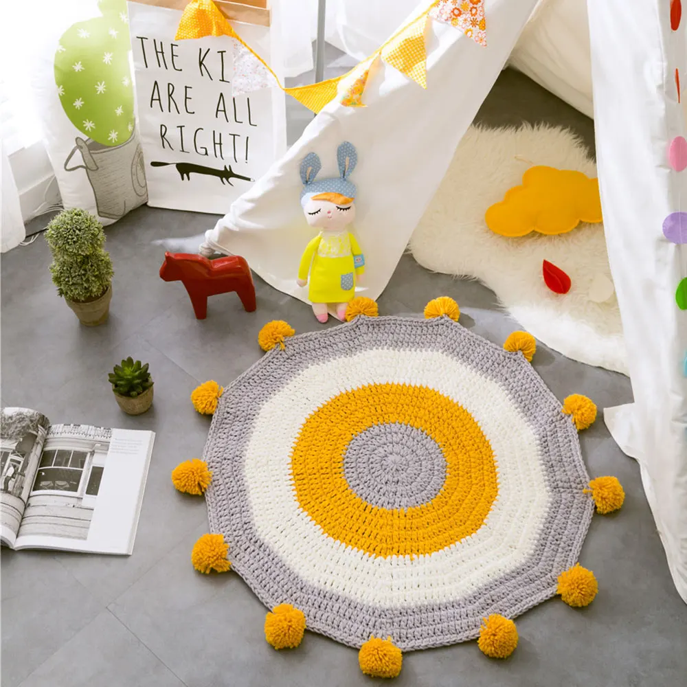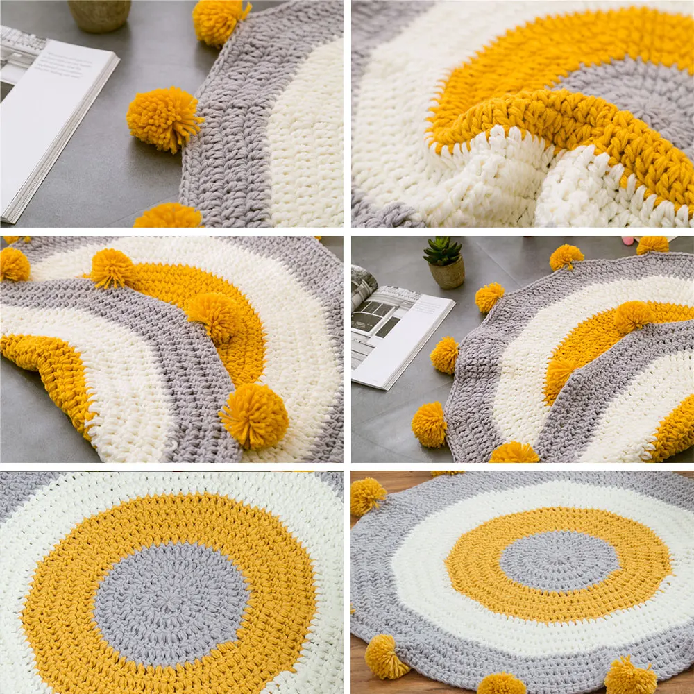 Цветовые комбинации, детский коврик для ползания, Коврики ручной работы, детское вязаное крючком одеяло, помпон, игровой коврик, украшение для детской комнаты