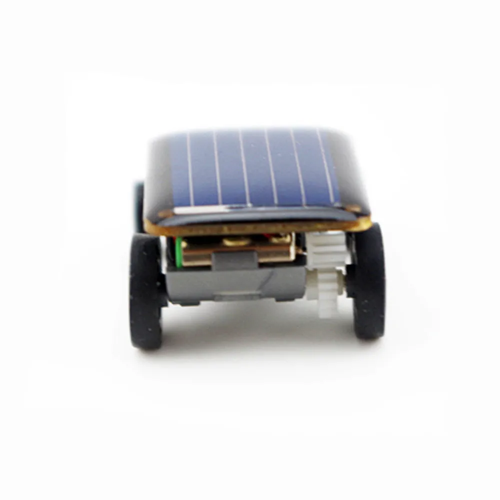 - Мини Солнечный гонщик-это игрушечный автомобиль, который считается самым маленьким в мире автомобилем на солнечных батареях. Солнечная панель позволяет автомобилю перемещаться от экологически чистой солнечной энергии, когда автомобиль помещается либо в солнечный светильник, либо под яркий искусственный светильник. Мини-Солнечный гонщик-полезная игрушка, чтобы показать как способности солнечной энергии, так и достижения в технологии, которые позволяют сделать автомобиль на солнечных батареях до таких значительно небольших размеров. Размеры игрушечного автомобиля: удивительное 3,3 см х 2,2 см х 1,4 см (1,3 дюйма х 0,87 дюйма х 0,55 дюйма) это означает, что он не подходит для детей до 3 лет из-за мелких частей (до и в том числе сам!).