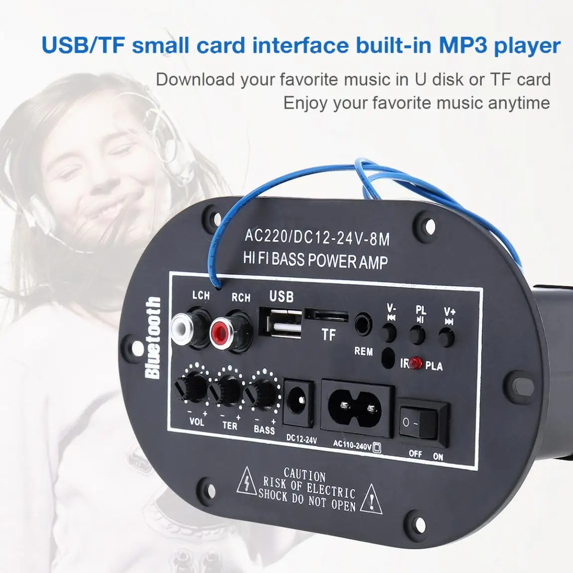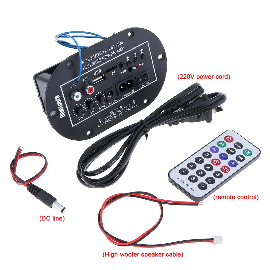 -С пультом дистанционного управления, функцией Bluetooth, FM/USB/TF картой чтения/радио.