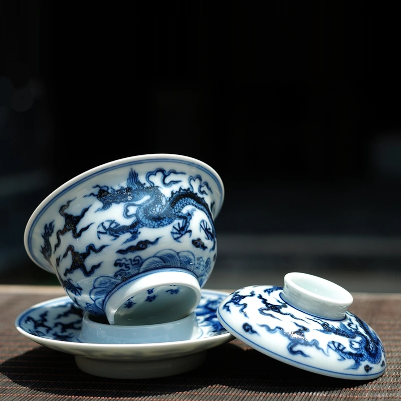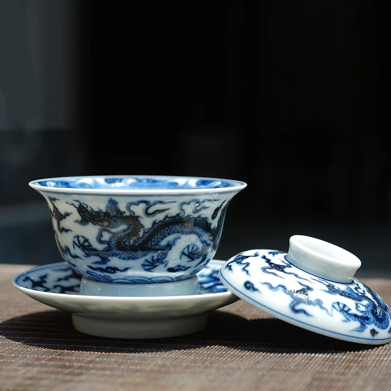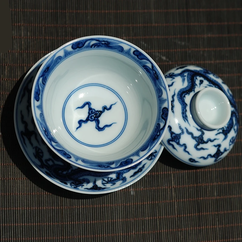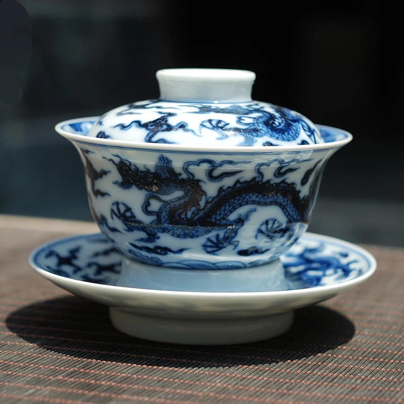 Отзывы о Ручная роспись синий и белый Пять драконов узор Tureen высококачественный сырой