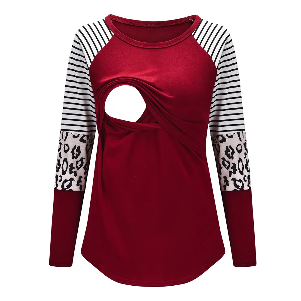 Отзывы о Women Maternity Clothes Leopard Striped Patchwork Top Long Sleeve Pregnant Nursing Shirt | Мать и ребенок
