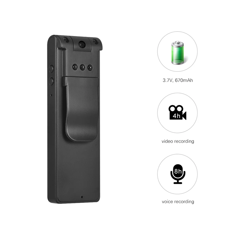 Высокая эффективность работы: это и диктофон, и видеорегистратор. Быстро начать. Камера Записывает четкие видео и фотографии в 1080 p, а также хорошо работает в условиях низкой освещенности светильник.