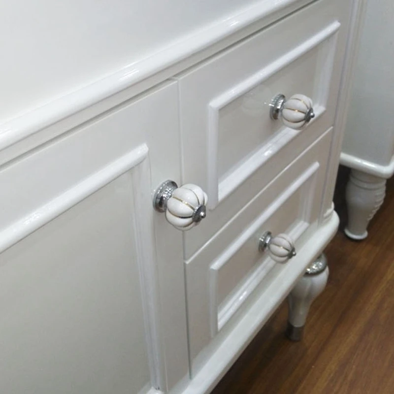 Отзывы о 10 шт белый круглый керамический тыквенный шкаф и мебельные ручки хромированные