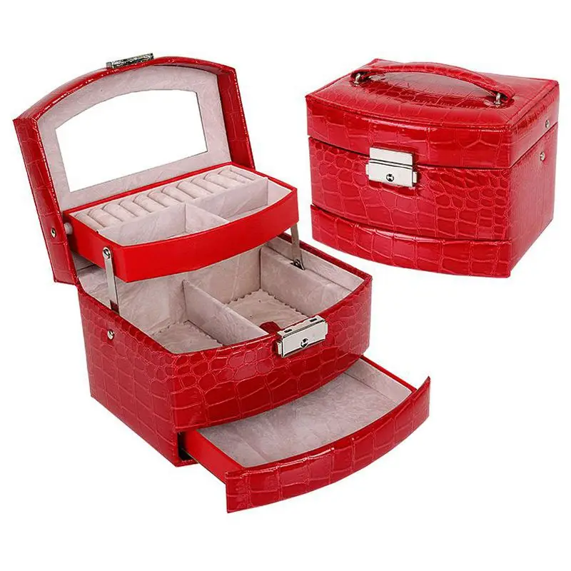 Эта коробка с крокодиловым узором, автоматическая шкатулка для ювелирных изделий, трехслойный чехол для хранения с косметическим зеркалом